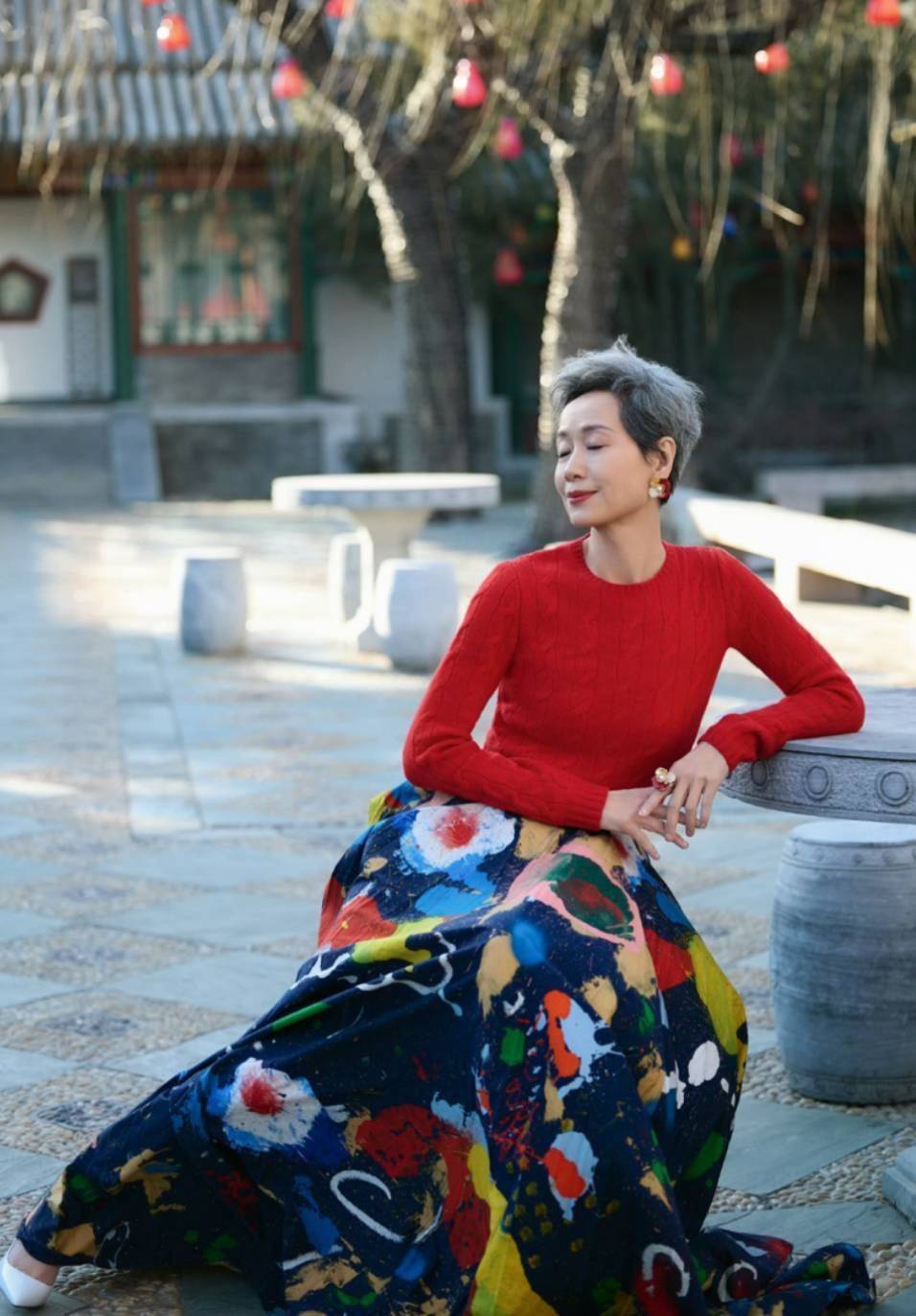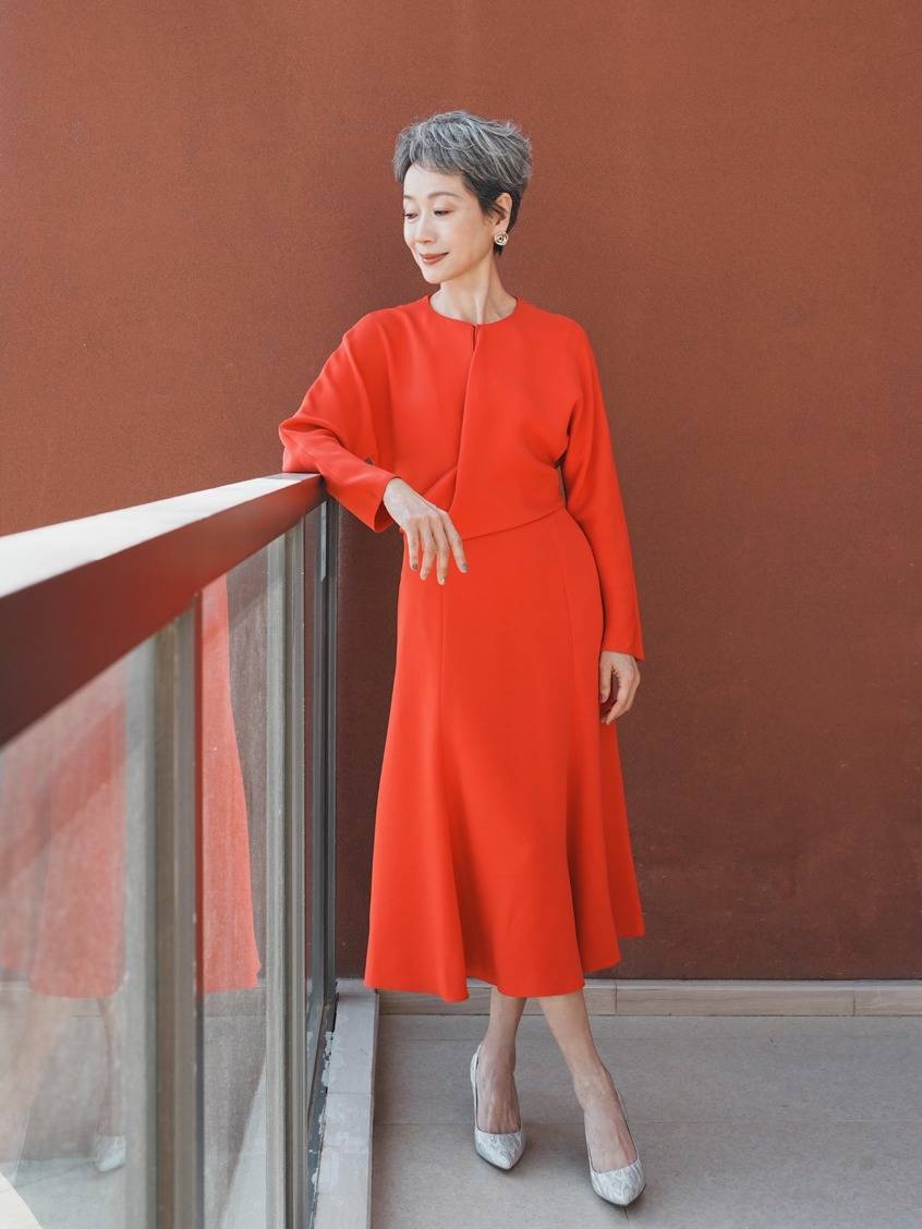甚至连鱼尾纹都能和姐姐的气质相辅相成,一袭红裙,搭配上银白色的尖头高跟鞋,女人味扑面而来。