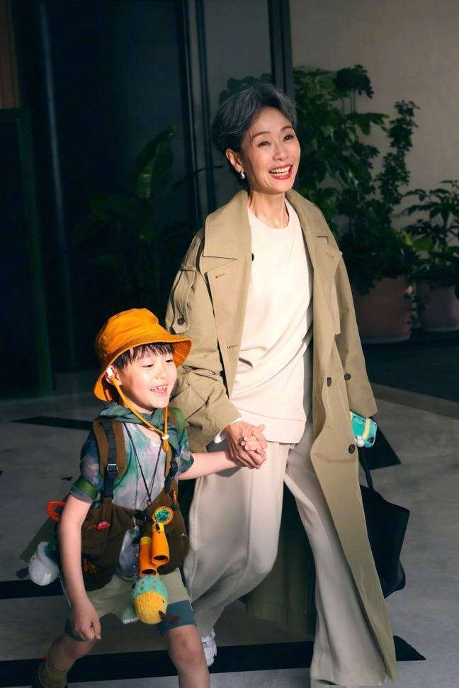 62岁的叶童,对身材管理十分严格,穿长风衣叠搭宽松卫衣,居然也没有臃肿感,反而穿出了修长纤细的身材。